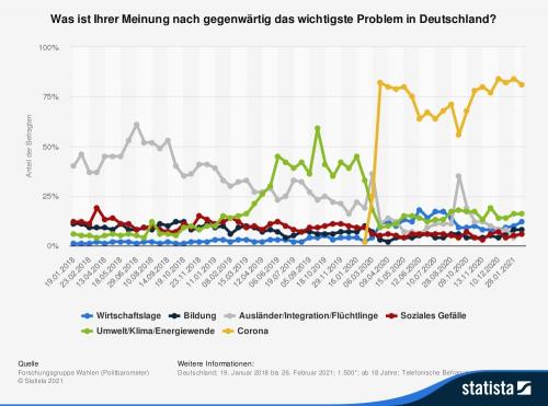 zu haben. Seit März 2020 ist die Sorge um die Folgen der Pandemie als wichtigstes Problem stark angestiegen und hat den Klimawandel verdrängt. Die Sorge um die Umwelt und den Planeten ist im Vergleich zum Jahr 2019 stark zurückgegangen.