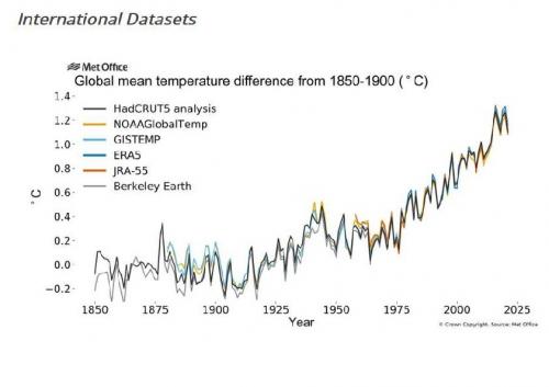 Die WMO verwendet sechs internationale Datensätze, um die umfassendste und zuverlässigste Temperaturbewertung zu gewährleisten. Sie stammen von der National Oceanic and Atmospheric Administration (NOAA) der USA, dem Goddard Institute for Space Studies der NASA, den United Kingdom's Met Office Hadley Center, der Climatic Research Unit (HadCRUT) der University of East Anglia sowie der Berkeley Earth Group.