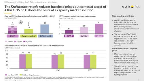 Verschiedene Kostenmodellierungen der deutschen Kraftwerksstrategie und eines Kapazitätsmarktes Zur Vollansicht bitte auf die Grafik klicken Quelle: Aurora Energy Research |