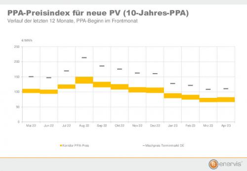 Das ergeben Berechnungen des Analysehauses Enervis für den gemeinsamen PPA-Preisindex mit