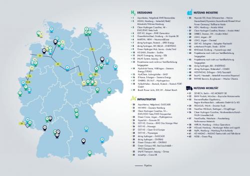 Für das IPCEI ausgewählte Wasserstoffstandorte. Zum Vergrößern bitte auf die Grafik klicken Grafik: BMWi |