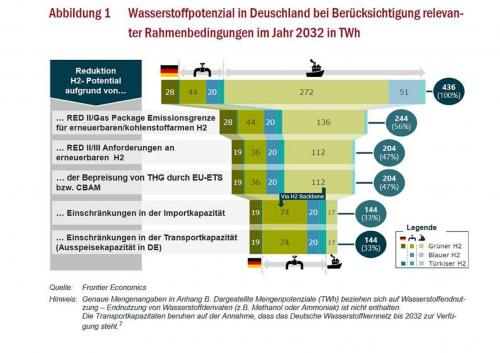 Wasserstoffmengen in Deutschland 2032 (zum Vergrößern bitte auf die Grafik klicken) Quelle: Frontier Economics |