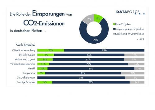 % der Flottenbetreiber im Gesundheitswesen sehen Aktivitäten der Beschäftigten in diesem Sinne gern. Am Ende des Klimabewusstseins steht im Vergleich die Baubranche mit ihren Fahrzeugen: Mehr als jeder fünfte Fuhrpark-Verantwortliche auf dem Bau gibt an, es sei in seinem Unternehmen "kein Thema", beim Fahren CO2 einzusparen.