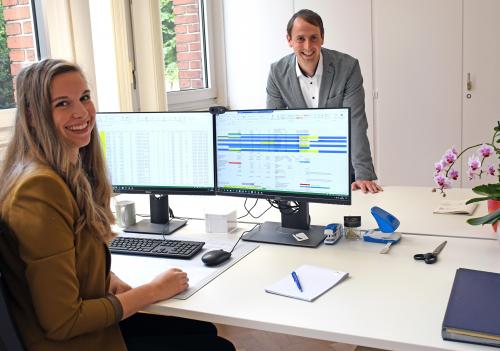 Lisa Rosenfeld und Frank Möllenbeck beim Einarbeiten des neuen digitalen Kollegen Quelle: SWTE Netz |