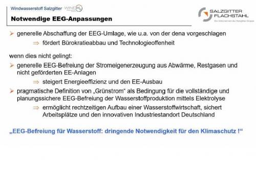 Die Forderungen der Salzgitter Flachstahl AG zur Reform der EEG-Umlage. Zur Vollansicht bitte auf das Bild klicken Bild: Salzgitter AG |