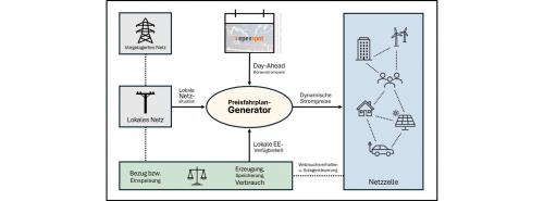 Das vom Bundesministerium für Wirtschaft und Energie (BMWE) geförderte Projekt arbeitet an einem Preissystem, das die Auslastung regionaler Stromverteilnetze abbildet. Prognosen, Netzsteuerungen und Preissignale laufen hierzu in einer digitalen Plattform zusammen. Eine offene Middleware mit standardisierten Schnittstellen soll es Stadtwerken und Energieversorgern ermöglichen, diese Preissignale einzubinden.