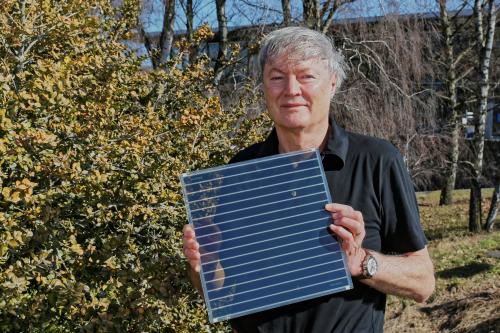 Professor Michael Grätzel mit einem Prototyp der von ihm entwickelten Solarzelle Bild: EPFL - Alain Herzog |