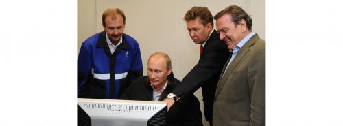 Von rechts: der damalige Bundeskanzler Gerhard Schröder (SPD), Gazprom-Chef Alexej Miller und Wladimir Putin 2011 Quelle: Gazprom |