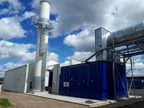 Die Abluftreinigungsanlage von Krantz kommt in einer der Lackierhallen der KSK Industrielackierungen in Geilenkirchen zum Einsatz. Sie nutzt lösungsmittelhaltige Abluft als Brennstoff für das hier gezeigte Mikrogasturbinenblockheizkraftwerk Bild: Steag |