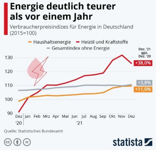 %. Der Gesamtindex der Verbraucherpreise ohne Energie stieg dagegen lediglich um 3,8