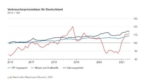 So hoch wie seit fast zehn Jahren nicht mehr ist die Inflationsrate in Deutschland, gemessen als Veränderung des Verbraucherpreisindex (VPI) zum Vorjahresmonat. Als Treiber der Inflationsrate macht das Statistische Bundesamt insbesondere die Preise für Kraftstoffe und Heizöl aus. Ohne Berücksichtigung dieser beiden Faktioren hätte die Inflationsrate nur bei plus 1,6