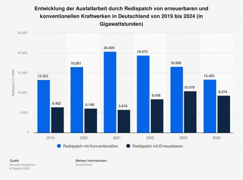 Im Jahr 2024 wurden in Deutschland rund 9,4 Terawattstunden Strom aus Erneuerbaren Energien abgeregelt, um die Netzstabilität gewährleisten zu können (Redispatch). Im Vorjahresvergleich ist das Volumen des Redispatch mit erneuerbaren Energien um rund elf Prozent gesunken. Die Abregelung kann notwendig werden, wenn die Netzkapazitäten nicht ausreichen, um den insgesamt erzeugten Strom abzutransportieren (Netzengpassmanagement).