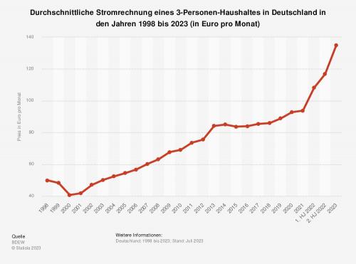 kWh zahlte ein 3-Personen-Musterhaushalt in Deutschland nach Angaben des BDEW durchschnittlich 134,94
