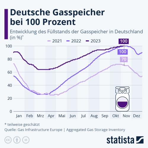 Prozent, wie Daten von Gas Infrastructure Europe (GIE) zeigen. Damit lässt sich laut Einschätzung der Bundesregierung Deutschland über zwei bis drei durchschnittlich kalte Wintermonate mit Erdgas versorgen. Im Jahr 2021 lag der Füllstand im gleichen Zeitraum bei 70