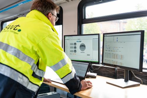 Im Zuginnern überwachen die Techniker die Ladevorgänge und werten sie aus Quelle: Stadtwerke Tübingen |