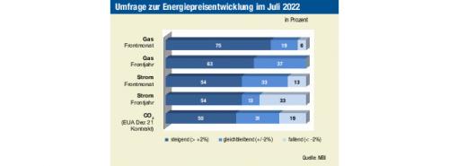 Energiepreisumfrage Juli 2022 (zum Vergrößern bitte auf die Grafik klicken) Quelle: MBI |