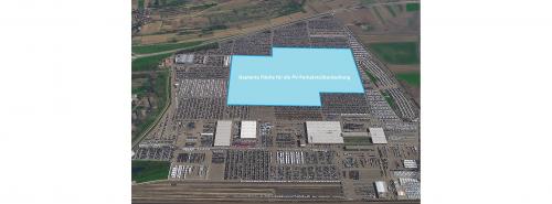 Der Parkplatz des Automobillogistikers Mosolf und die geplante PV-Überdachungsfläche Quelle: MOSOLF Group |