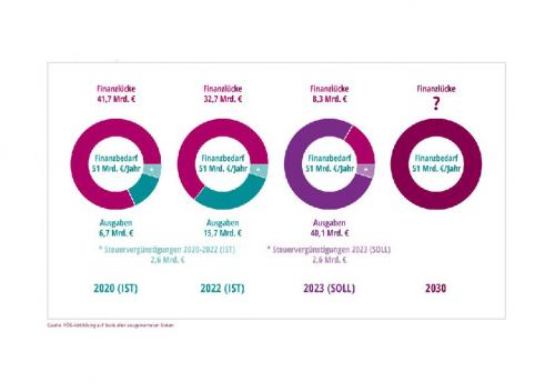 Obwohl die Finanzierungslücke derzeit schrumpft, seien weitere Maßnahmen erforderlich, um sie zukünftig zu schließen und die deutschen Klimaziele zu erreichen. Allerdings deuten einige Zeichen in die andere Richtung, so die geschäftsführende Vorständin des FÖS, Carolin Schenuit: „Die Bundesregierung plant sogar, nach 2024 die Ausgaben des Klima- und Transformationsfonds bereits wieder zurückzufahren.“