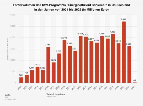 Milliarden Euro. Ende Januar des Jahres 2022 hatte die Bundesregierung die KfW-Förderung wegen fehlender finanzieller Mittel vorübergehend gestoppt. Einen Monat später konnten Bürgerinnen und Bürger jedoch wieder neue Anträge auf KfW-Zuschüsse für energieeffizientes Sanieren stellen. Der Haushaltsausschuss hatte entsprechende Mittel freigegeben.
