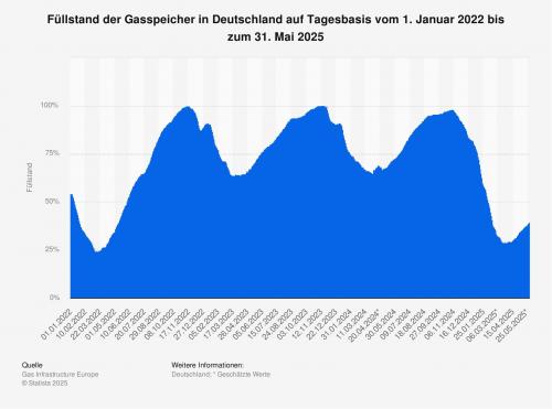 TWh. Wie die Statistik veranschaulicht, sind die Füllstände der deutschen Gasspeicher im Laufe eines Jahres, beziehungsweise einer Heizperiode, deutlichen Schwankungen unterworfen. Einen sehr ähnlichen Verlauf kann bei weiteren europäischen Ländern beobachtet werden.