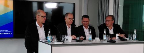 v.li.: CFO Stefan Hadré, CEO Georg Friedrichs, Vertriebsvorstand Matthias Trunk und Pressesprecher Rainer Knauber bei der Vorstellung der Gasag-Bilanz für 2023 Quelle: E&M/S.Harmsen |