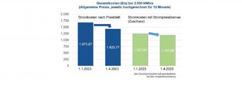 Bereits im Dezember 2022 hatten die SWM eine Preissenkung um 10 Cent/kWh ab dem 1. April angekündigt. „Mit der Preissenkung und der Preisbremse zusammen reduzieren sich die Stromkosten für den Münchner Durchschnittshaushalt um rund 30 %“, so die Stadtwerke. Grundsätzlich nivelliere die Preisbremse die Strompreise und schwächt die Wirkung von Preisbewegungen deutlich.