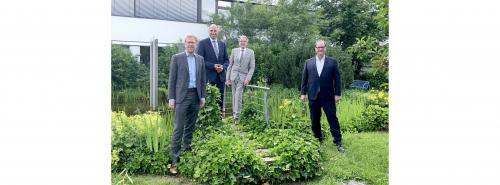 V.l.: Winfried Rasbach (stellvertretender Aufsichtsratsvorsitzender der SVS), Gregor Gülpen, Ulrich Köngeter und Jürgen Roth, Aufsichtsratsvorsitzender der SVS und Oberbürgermeister der Stadt Villingen-Schwenningen |