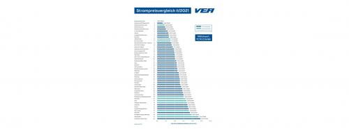 Strompreisvergleich im zweiten Quartal 2021. Zum Vergrößern bitte auf das Bild klicken Quelle: VEA |