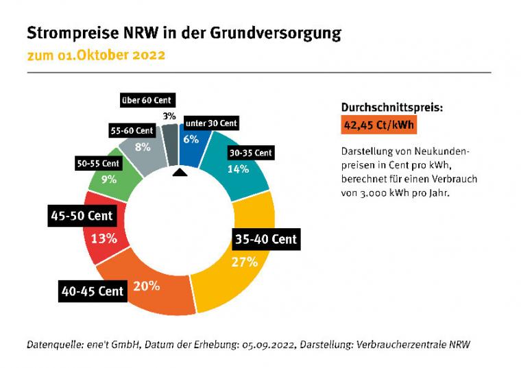 Preisniveau der Grundversorgungstarife Strom und Gas in NRW zum Stichtag 01.10.2022“ der Verbraucherzentrale Nordrhein-Westfalen kann auf deren Internetseite heruntergeladen werden.