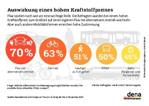 Die Umfrage zeigt zudem, dass 70 Prozent der Verbraucher bei einem hohen Kraftstoffpreis zum Kauf eines alternativ angetriebenen Fahrzeugs tendieren statt auf Fahrrad oder öffentliche Verkehrsmittel umzusteigen.
