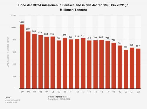 Im Jahr 2022 wurden in Deutschland Kohlenstoffdioxid-Emissionen in Höhe von 657
