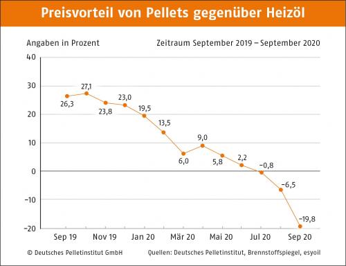 Die Grafik zeigt den Preisvorteil von Pellets gegenüber Heizöl Quelle: DEPV |