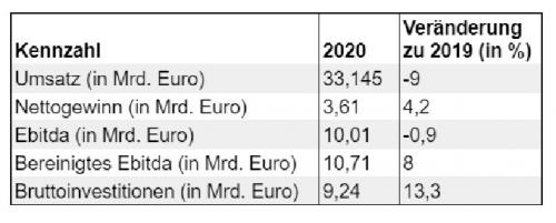Während der Konzernumsatz um 9 % auf rund 33,1 Milliarden Euro sank, ging das Ergebnis vor Zinsen, Steuern und Abschreibungen (Ebitda) nur um knapp ein Prozent auf rund zehn Milliarden Euro zurück. Unter dem Strich erzielte Iberdrola einen um gut 4 % gestiegenen Nettogewinn von 3,6 Milliarden Euro. Dazu trug ein positiver Einmaleffekt aus dem Verkauf der Beteiligung am Windkraftanlagenhersteller Siemens Gamesa bei.