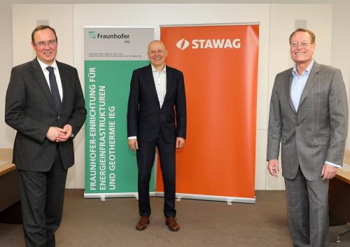 Bei der Unterzeichnung der Kooperationsvereinbarung (v.l.) Rolf Bracke, Leiter der IEG, Frank Brösse, Geschäftsführer der Stawag Energie, Christian Becker, Vorstand der Stawag Bild: Stawag/A. Steindl |