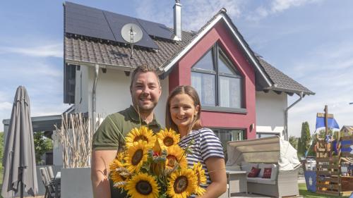 Andreas und Christine Maier vor ihrem Haus mit der neuen Solaranlage Quelle: Bayernwerk / Uwe Mossburger |