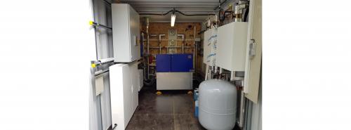 Im Container ist die neue Wärmeversorgung mit BHKW und Pufferspeicher untergebracht Bild: Universität Kassel |