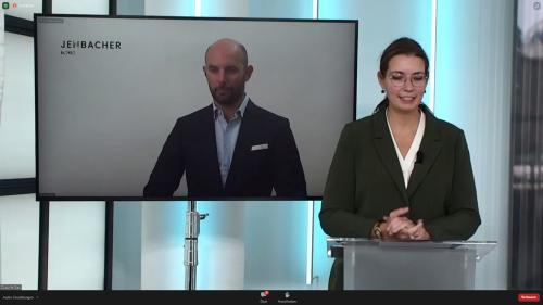 Carl Richers, Vice President Product Management und Marketing bei Innio Jenbacher, im Gespräch mit Ann-Kristin Müller, Hauptreferentin Presse- und Öffentlichkeitsarbeit bei Zukunft Gas. Quelle: Screenshot E&M |