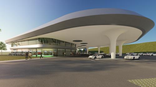 144 Ladepunkte sind am Ladepark in Zusmarshausen bei Augsburg (Bayern) geplant. Mit 60 soll er im Frühjahr an den Start gehen. In ihrer Endausbaustufe, so heißt es, werde die Anlage die größte der Welt sein. Während des Ladevorgangs können die E-Autofahrer in der Raststätte essen und trinken, einkaufen oder konferieren und arbeiten. Nicht nur äußerlich gibt sich der "Sortimo Innovationspark" mit seinen geschwungenen Formen und grün-weißer Optik beeindruckend fortschrittlich. Auch die Energie- und Raumkonzepte sind es: Von der Nutzung der Ladesäulen-Abwärme für die Gebäudeheizung bis hin zu den Beleuchtungs- und elektronisch gesteuerten Schiebetürkonzepten.