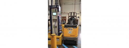 Gabelstapler im Lidl-Logistikzentrum Carquefou beim Brennstoffzellen-Aufladen Quelle: Lhyfe |