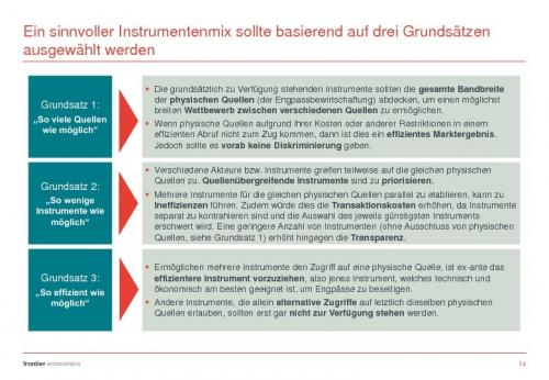 Kriterien für die Auswahl der besten Marktinstrumente aus der Frontier-Economics-Studie. Zum Vergrößern auf die Grafik klicken Grafik: Frontier |