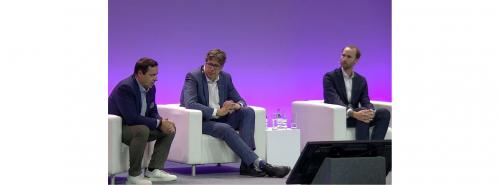 Diskussion auf dem Future Battery Forum 2024: (v.li.) Richard Bouveret (Ceo Blue Solutions), BMWK-Staatssekretär Michael Kellner und Kai Alexander Müller (CFO Power Co) Quelle: E&M / S. Harmsen |