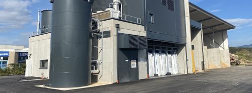 Besonderheit: bei diesem Holzkraftwerk wird neben Strom und Wärme auch Pflanzenkohle produziert
