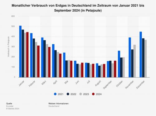 Petajoule durch das Verbrennen von Erdgas erzeugt. Dies entspricht einer Zunahme im Vergleich zum Vorjahresmonat. Seit Beginn des Jahres 2022 stieg der Verbraucherpreis für Erdgas signifikant an und erst die durch die Bundesregierung beschlossene Soforthilfe zum Erlass des Dezemberabschlags konnte diesen Aufwärtstrend stoppen. Die gestiegenen Preise können insbesondere mit den eingestellten Erdgasexporten aus Russland begründet werden. Vor dem russischen Angriffskrieg auf die Ukraine bezog Deutschland über die Hälfte seiner Erdgasimporte durch Russland und war damit gezwungen, seine Importstruktur zu diversifizieren.