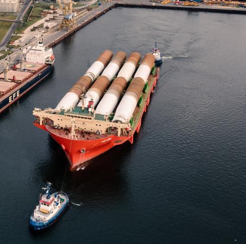In Rostock sind die ersten acht Monopiles für das Dominion Energy-Projekt "Coastal Virginia Offshore Wind" verladen worden. An Bord des Deck Carriers sind die Fundamente nun auf dem Weg zum Portsmouth Marine Terminal in Virginia (USA), wo sie in knapp drei Wochen ankommen werden. Insgesamt produziert EEW SPC 176 Monopile-Fundamente, die bis zu 83
