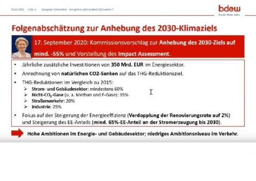 Folgenabschätzung des höheren EU-Klimaschutzziels bis 2030 Bild: BDEW Zum Vergrößern auf das Bild klicken |