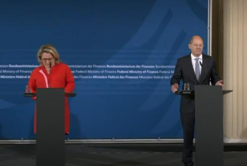 Die SPD-Minister Svenja Schulze und Olaf Scholz auf der Pressekonferenz am 5. Mai 2021 Bild: BMU |