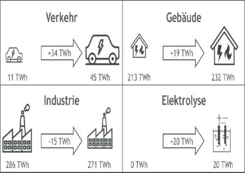 | Analyse des steigenden Stromverbrauchs nach Sektoren bis 2030 Bild: EWI |