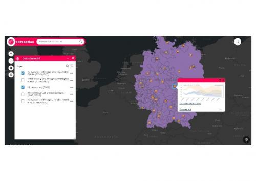 wie Personen mit Vorerkrankungen, ältere Bevölkerungsschichten sowie Kleinkinder und Säuglinge. Für diese könne die Hitze besonders zu gesundheitlichen Belastungen führen. Der Atlas zeigt Temperaturvorhersagen, Ballungsgebiete, Einwohnerzahlen und die Altersstruktur der Einwohner an. Mithilfe der visualisierten Daten können Nutzerinnen und Nutzer durch eine interaktive Auswahl selbst Aussagen über die Veränderung der Temperatur in ihrer Stadt treffen und sich über die Gefährdung innerhalb der Ballungsgebiete informieren.