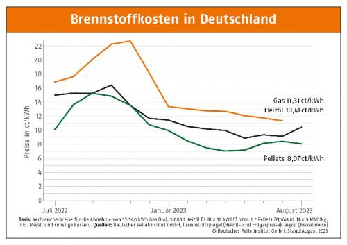 Brennstoffkosten seit Juli 2022 bis August 2023 im Vergleich (zum Vergrößern bitte auf die Grafik klicken) Quelle: Depi |