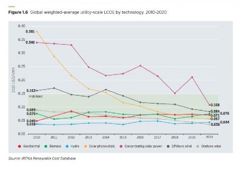 Zu ähnlichen Ergebnissen kommt der Bericht "Power Generation Costs 2020" der Irena. Demzufolge hatten 62 % der im vergangenen Jahr weltweit neu hinzugefügten Erneuerbaren-Erzeugung niedrigere Stromgestehungskosten als die günstigste neue fossile Option. Mit weit voranschreitender Entwicklung würden die Erneuerbaren zunehmend auch günstiger produzieren als bestehende Kohlekraftwerke, so die International Renewable Energy Agency.